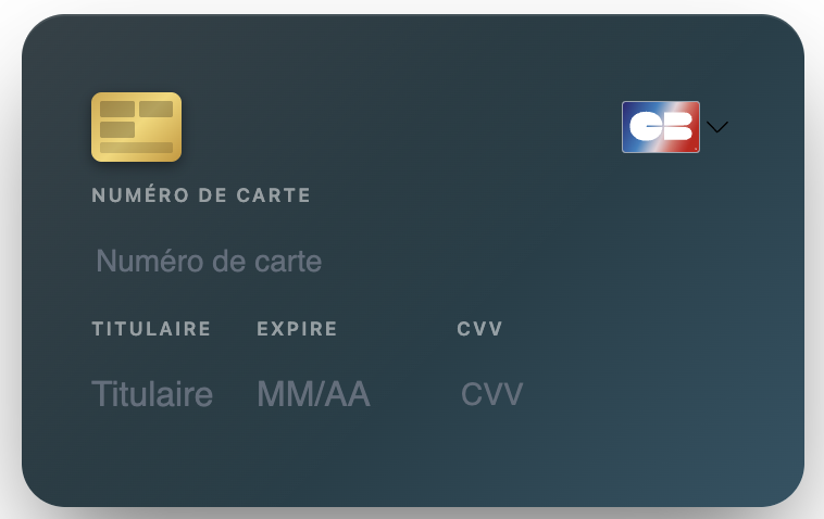 When a card-based vault method is selected (credit or debit card stored via Purse tokenization), the SDK provides two